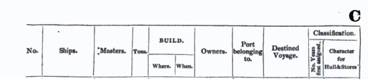 | No. | Ships. | Masters. | Tons. | Build | Owners | Owners | Port Belonging
