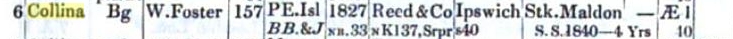 | 6 | Collina Bg | W.Foster | 157 | PE.Isl | 1827 | Reed(sic) & Co | Ipswich | Stk.Maldon- | AE1 |