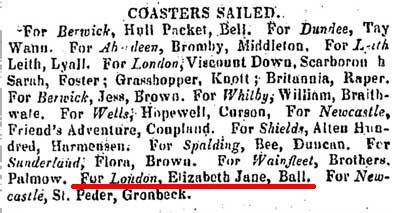 SUNDERLAND . Arrived, ... Elizabeth and Jane, Potter, Whitstable, corf rods.